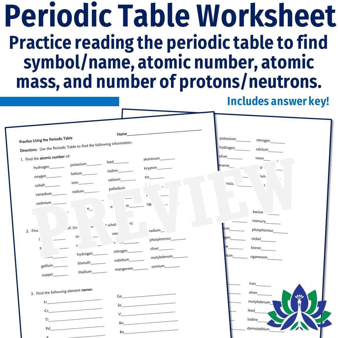 Periodic table of elements worksheets are a great way for students to practice and reinforce their knowledge of the elements. These worksheets typically contain a variety of questions related to the periodic table, such as identifying elements based on their atomic number or symbol, understanding the properties of different groups of elements, and predicting chemical reactions.