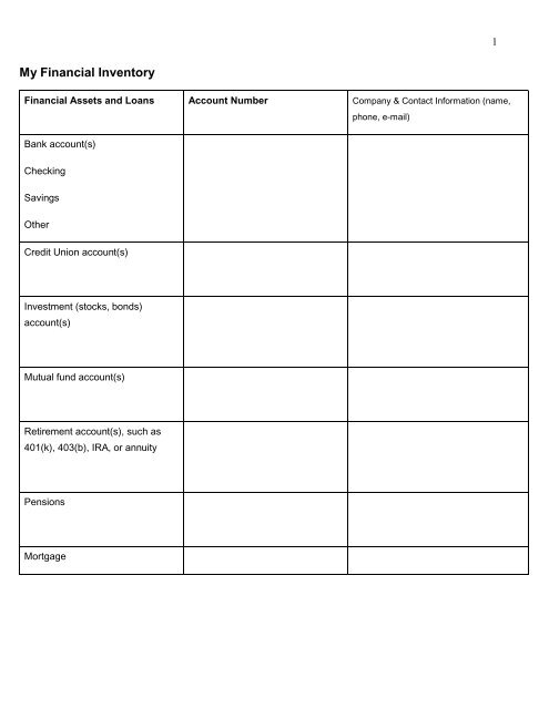 Download and Print personal inventory worksheet Listed below