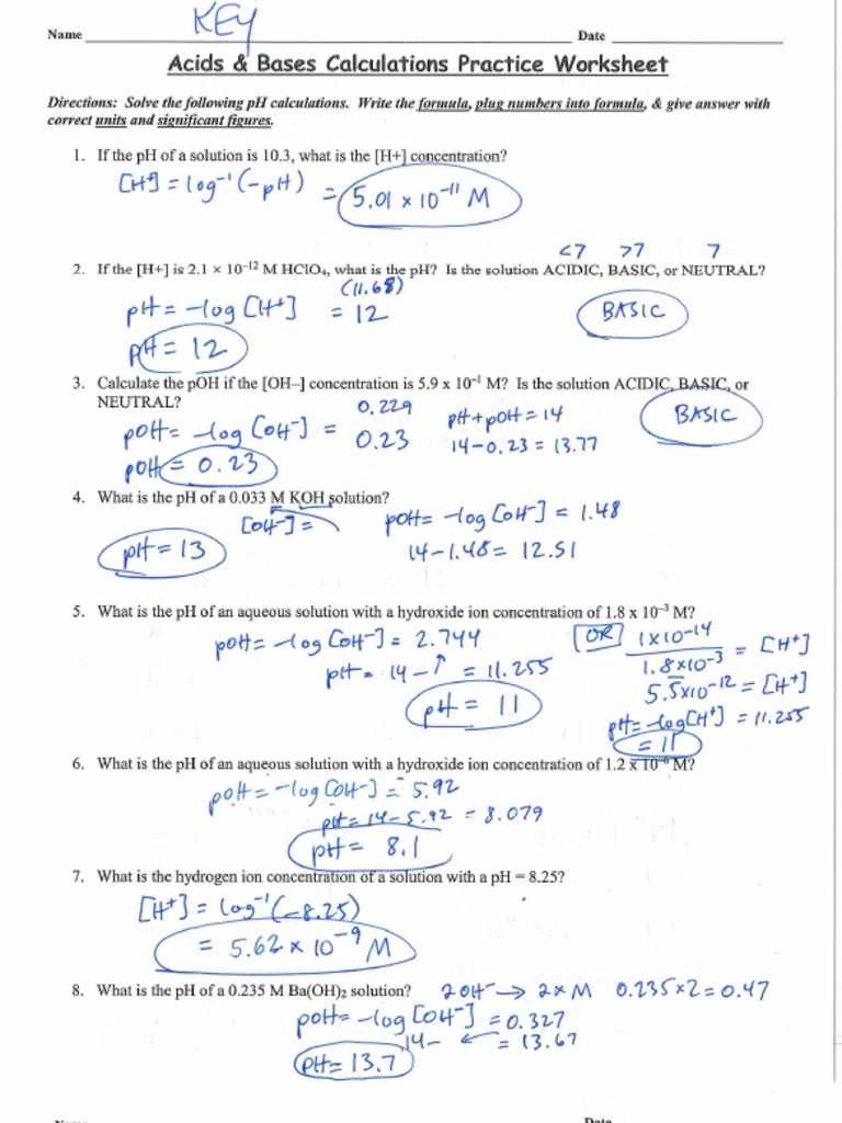 A pH calculations worksheet is a useful tool for practicing and mastering the skills needed to calculate the pH of a solution. These worksheets typically include a series of problems that require students to calculate the pH of different solutions based on their hydrogen ion concentrations. By completing these worksheets, students can improve their understanding of pH calculations and become more proficient in applying them to real-world scenarios.