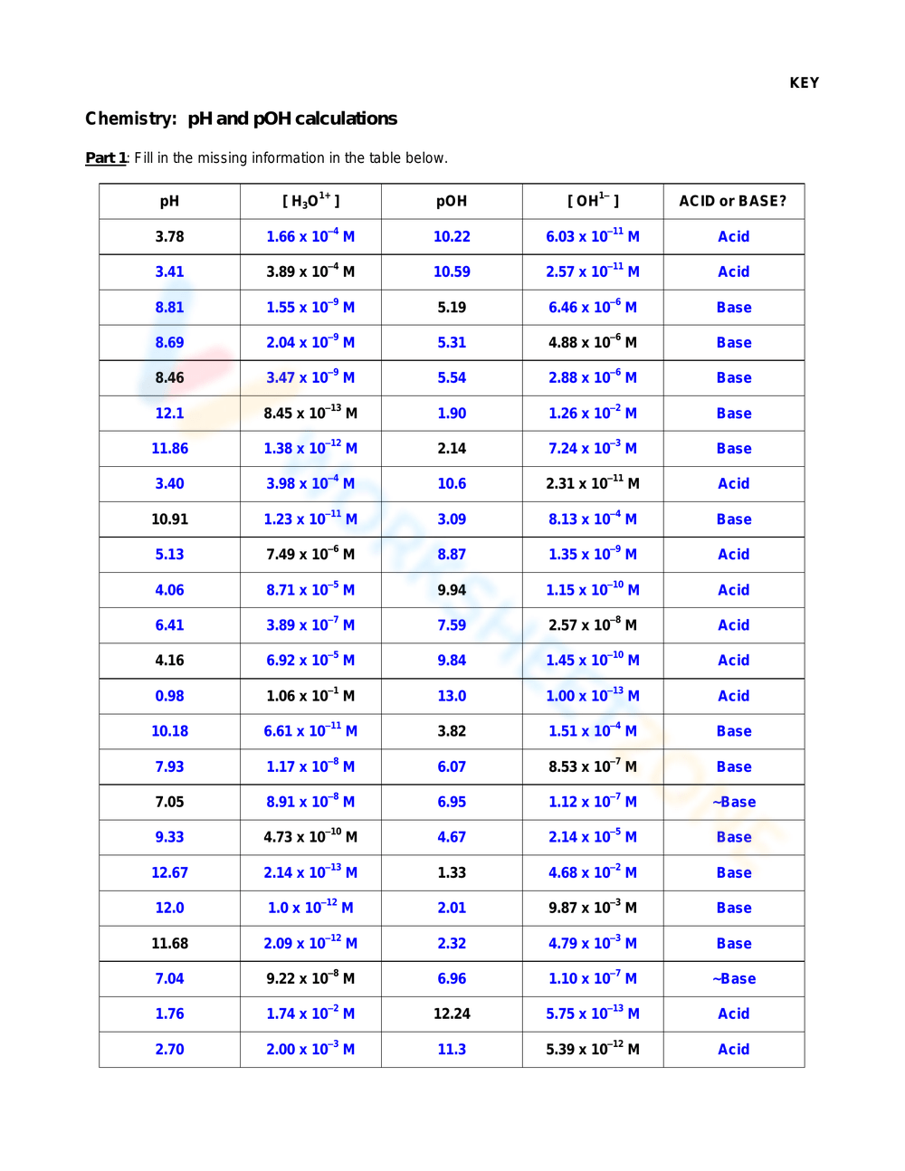 Grade 9 Ph And Poh Calculations Worksheets 2024 Worksheets Library