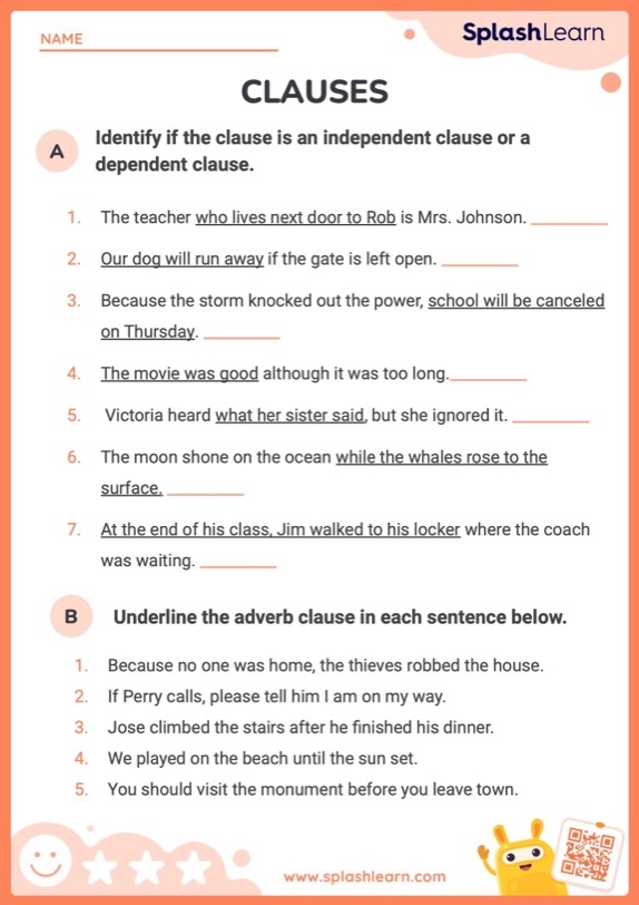 One common type of exercise on a phrases and clauses worksheet is to identify the main clause and any subordinate clauses in a sentence. Subordinate clauses are dependent on the main clause for meaning and cannot stand alone as complete sentences. By recognizing the relationships between main clauses and subordinate clauses, you can enhance your ability to construct complex sentences that convey precise meanings.