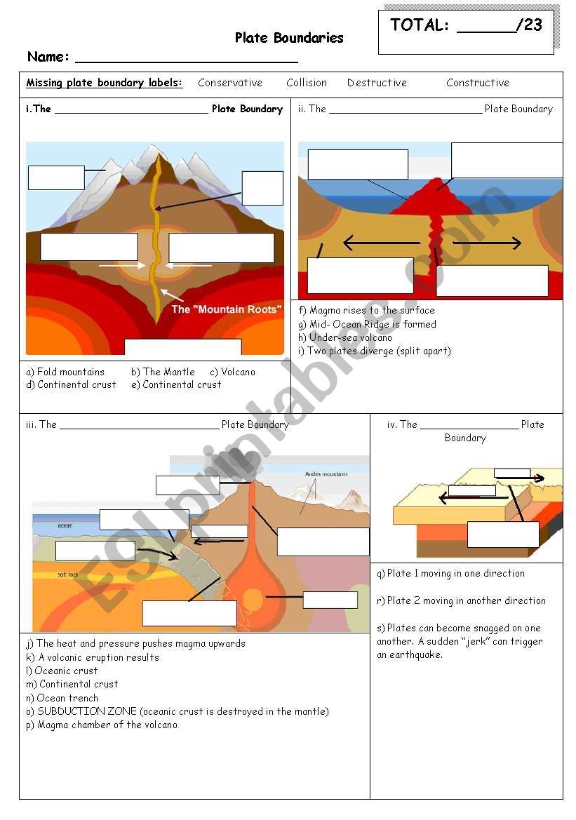 Plate Movement Worksheet