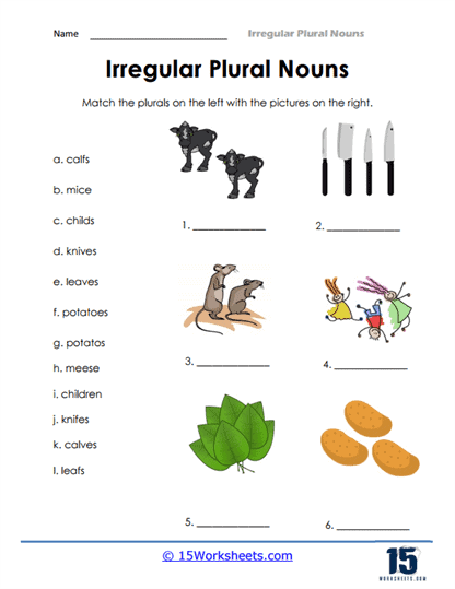 Another important aspect of plural nouns is understanding irregular plurals. These are nouns that do not follow the typical rules for forming plurals. For instance, “child” becomes “children,” “man” becomes “men,” and “mouse” becomes “mice.” Students will have the opportunity to practice identifying and using irregular plurals in sentences on this worksheet.