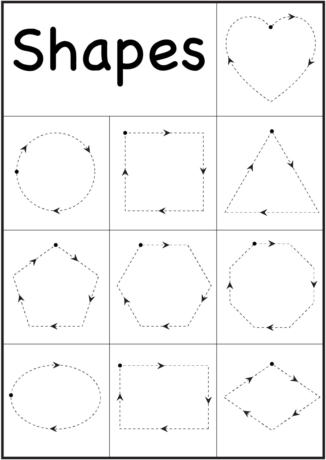 1. Tracing Shapes: Printable worksheets with different shapes for your child to trace can help them practice their hand movements and control. This activity will also help them recognize and distinguish between different shapes, which is an important skill for writing letters and numbers.