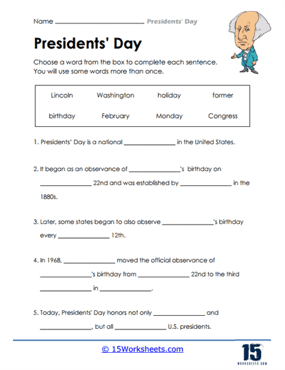Benefits of President’s Day Worksheets