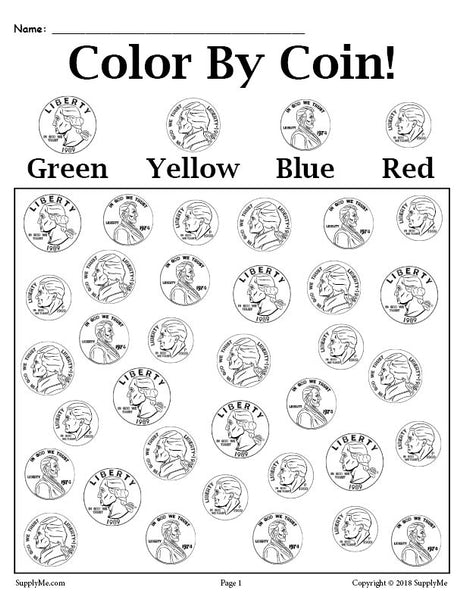 A color by coin worksheet is a fun activity where children color different parts of an image based on the value of the coins. For example, a child may need to color all the areas that represent quarters in one color, and the areas that represent dimes in another color. This hands-on approach helps children visually identify and differentiate between coins.