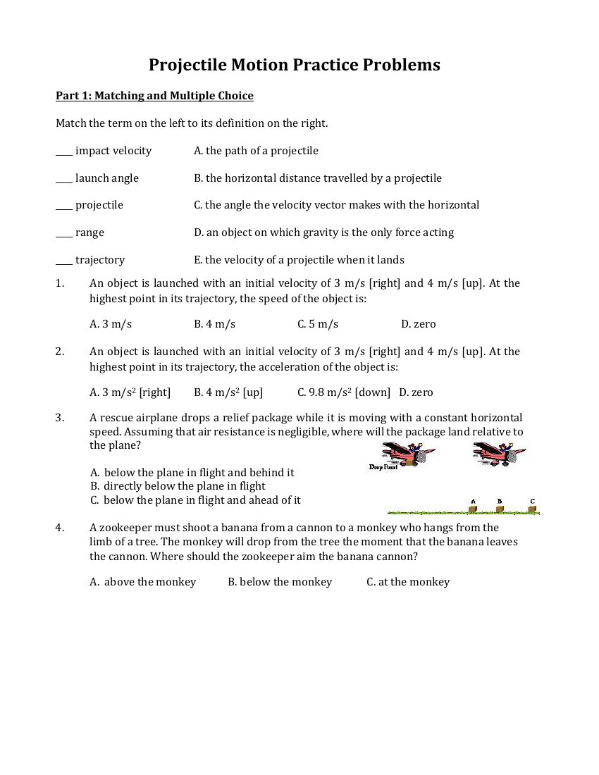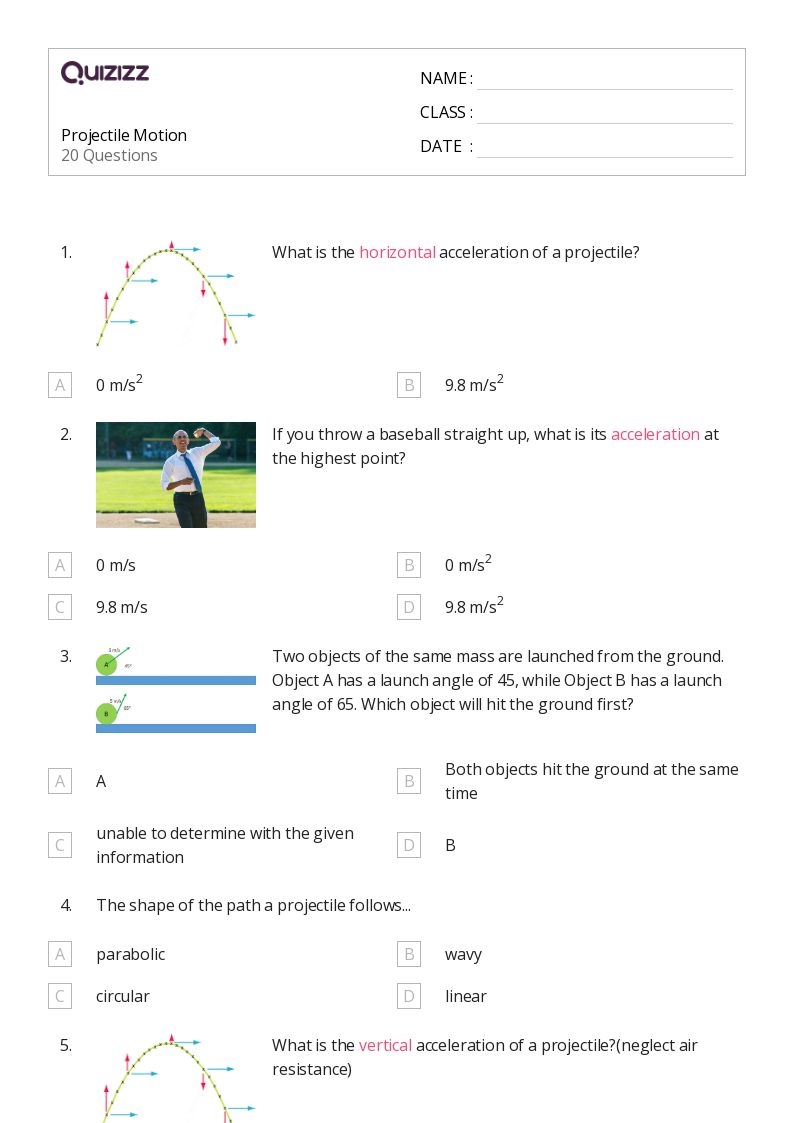 Projectile motion is a fundamental concept in physics that involves the motion of an object thrown or projected into the air. It is characterized by both horizontal and vertical components, influenced by gravity and air resistance. To better understand this concept, teachers often use worksheets to help students practice calculations and problem-solving related to projectile motion.