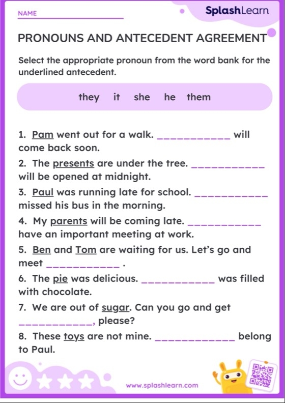 Pronoun And Antecedent Agreement Worksheet