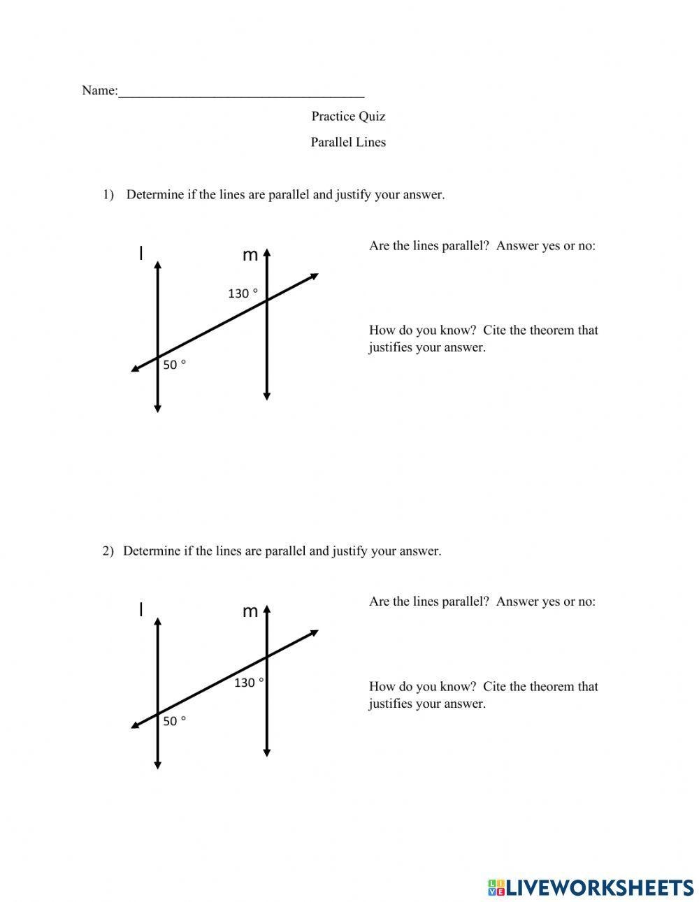 Proving Lines Parallel Worksheet