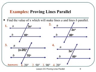 Working through proving lines parallel worksheets also allows students to test their problem-solving skills and critical thinking abilities. By encountering different scenarios and challenges on the worksheets, students can develop their logical reasoning and analytical skills, which are essential for success in geometry and other mathematical subjects.