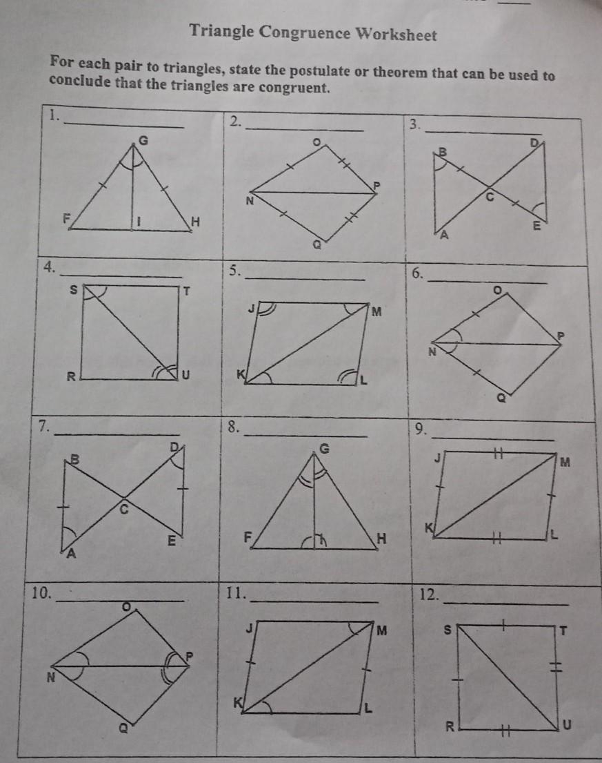 When working on a proving triangle congruence worksheet with answers PDF, it’s important to pay close attention to the given information in each problem. You may need to use properties of triangles, such as the Triangle Sum Theorem or the Congruence Postulates, to justify your reasoning. It’s also essential to carefully follow the steps of the congruence proofs to ensure that your arguments are valid and logical.