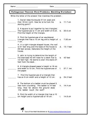 A Pythagorean word problems worksheet with answers in PDF format is a convenient resource for both teachers and students. These worksheets can be easily printed and distributed in the classroom or used for independent practice at home. The answers provided in the PDF allow students to self-assess their work and make corrections as needed.
