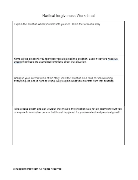 Radical forgiveness can be a challenging process, but it is incredibly rewarding. One way to practice radical forgiveness is by using a forgiveness worksheet. This tool can help guide you through the process of letting go of negative emotions and finding true forgiveness.