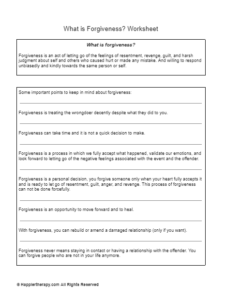 Another important aspect of a forgiveness worksheet is identifying any beliefs or narratives that are contributing to your feelings of anger or resentment. By examining these underlying beliefs, you can start to challenge and reframe them in a more positive and forgiving light. This can help shift your perspective and open your heart to forgiveness.