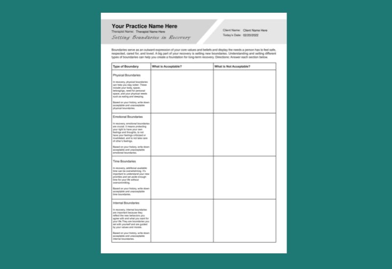 Recovery Worksheets PDF