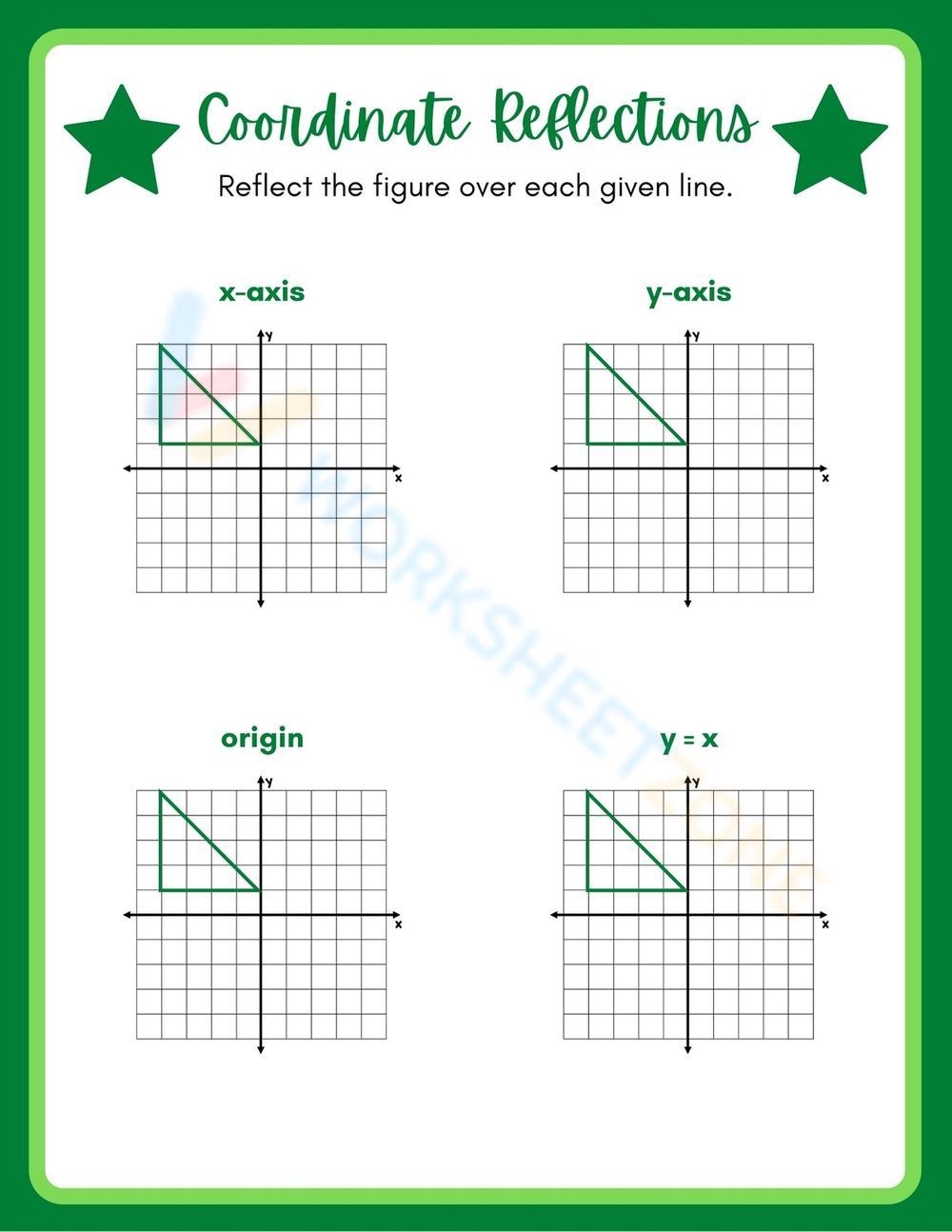 Students can use reflections math worksheets to reinforce their learning in the classroom or as extra practice at home. These worksheets can also be used by teachers as assessments to gauge students’ understanding of the concept and identify areas where additional support may be needed.