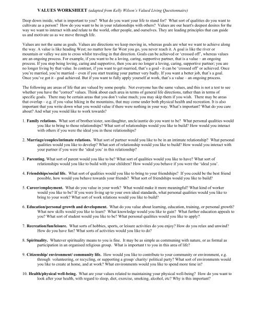 The worksheet typically includes a list of common values such as honesty, trust, communication, respect, and empathy. Users are asked to rank these values in order of importance and reflect on how each value plays a role in their relationships.