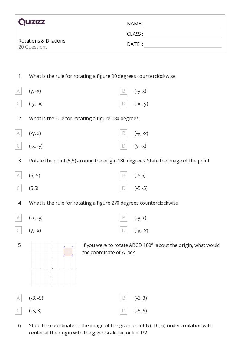 Rotation math worksheets are designed to provide students with hands-on practice in applying the rules and principles of rotation. They help students develop their spatial reasoning skills and enhance their ability to visualize and manipulate geometric shapes in a 2D plane.