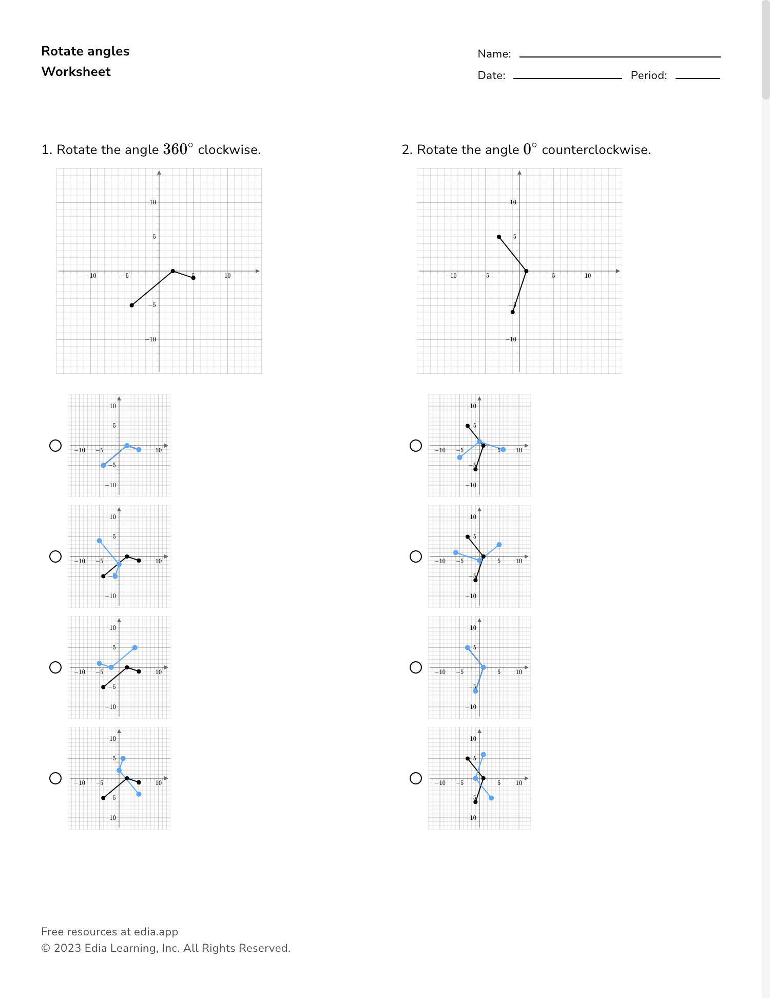 These worksheets typically include various exercises where students are required to rotate shapes or objects around a given point by a certain angle. By completing these worksheets, students can improve their understanding of rotational symmetry, angles of rotation, and other related concepts.