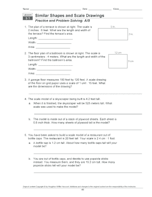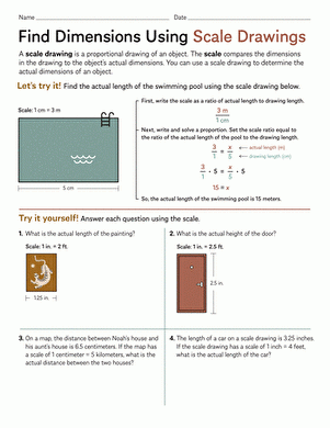 A scale drawings worksheet is a tool used to practice and test understanding of scale drawings. These worksheets often include questions that require students to calculate dimensions, scale factors, and proportions of objects or structures based on a given scale. By working on scale drawings worksheets, students can improve their spatial reasoning skills, mathematical proficiency, and ability to visualize and interpret scaled representations.
