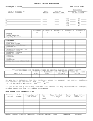 Schedule E – Rental Income Worksheet