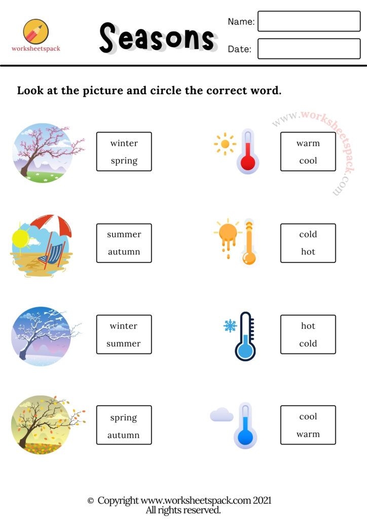 Seasons worksheets for kindergarten can also include simple math and literacy activities related to the seasons. For example, students may be asked to count the number of flowers in a spring garden or write a short sentence describing a favorite winter activity. These types of worksheets can help reinforce basic academic skills while also teaching children about the world around them.