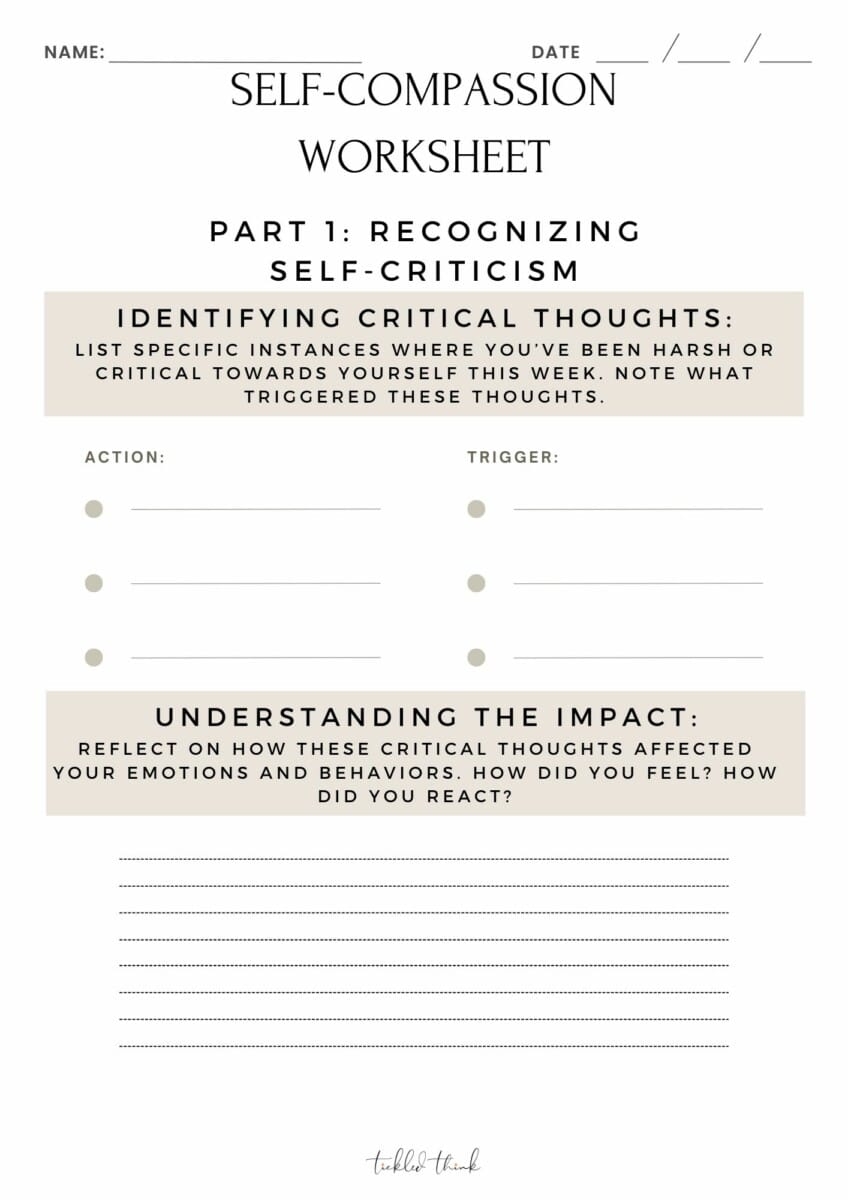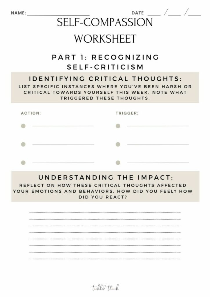 Self-compassion is the act of being kind and understanding towards oneself, especially in times of struggle or failure. It involves treating yourself with the same kindness and care that you would offer to a friend in need. One way to cultivate self-compassion is through the use of worksheets that help you reflect on your thoughts, emotions, and behaviors.