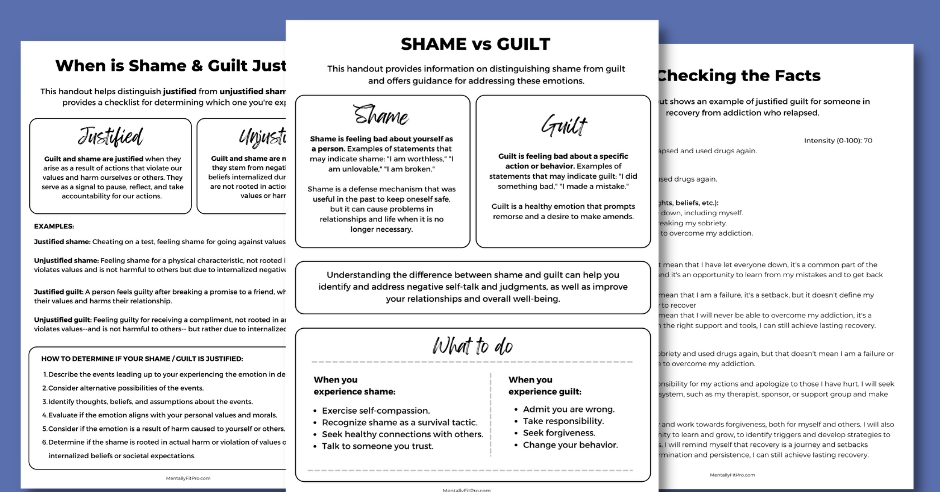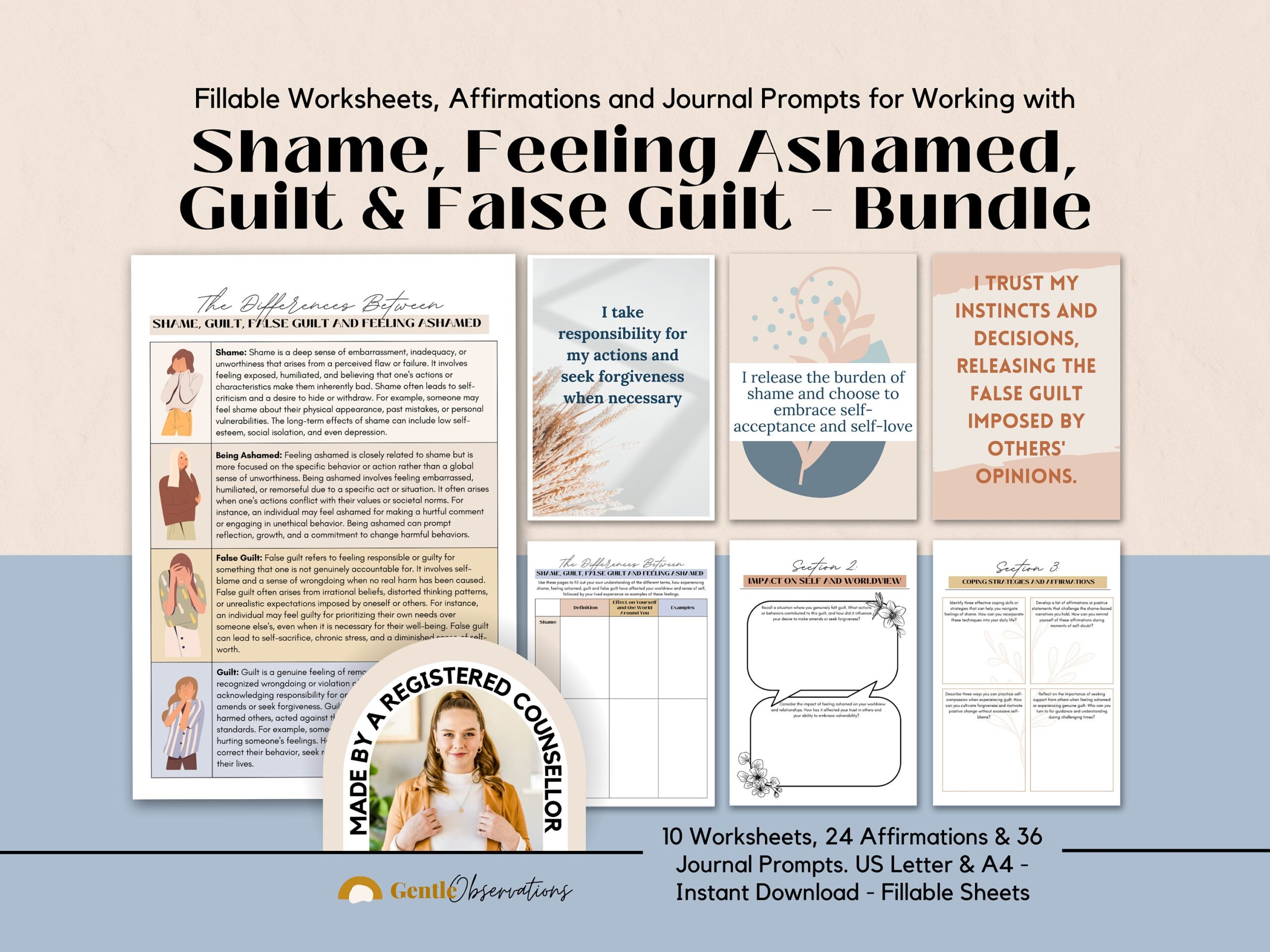 These worksheets are designed to help individuals identify the roots of their shame and guilt, understand the impact these emotions have on their thoughts and behaviors, and develop strategies to manage and overcome them. By engaging with these worksheets, individuals can gain insight into their emotions, build self-awareness, and work towards healing and growth.