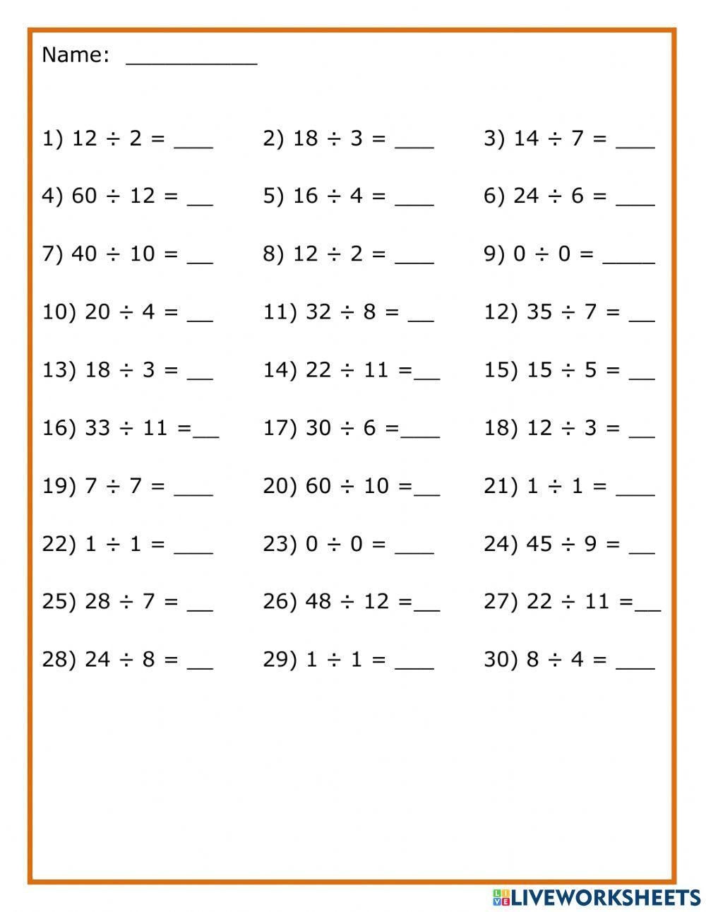 Division is one of the fundamental arithmetic operations that children learn in school. It involves splitting a number into equal parts. To help students practice and master division, teachers often provide them with worksheets that contain a series of division problems to solve. These worksheets are a great way for students to improve their division skills and build their confidence in math.
