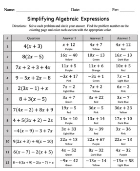 These worksheets typically include a variety of problems that cover different types of algebraic expressions, such as combining like terms, distributing, and factoring. By practicing with a range of problems, students can develop a deeper understanding of algebraic concepts and improve their problem-solving skills. Additionally, the answers provided in the worksheets help students to verify their solutions and learn from their mistakes.