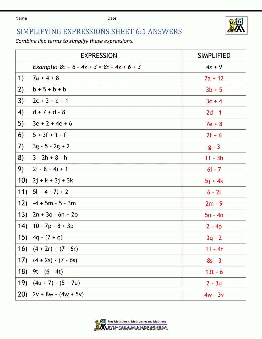 Algebra is a fundamental part of mathematics that involves solving equations and simplifying expressions. One of the key skills in algebra is simplifying algebraic expressions, which involves combining like terms and performing operations to make the expression as simple as possible. Worksheets are a great way for students to practice simplifying algebraic expressions and test their understanding. With the availability of worksheets with answers in PDF format, students can easily check their work and track their progress.