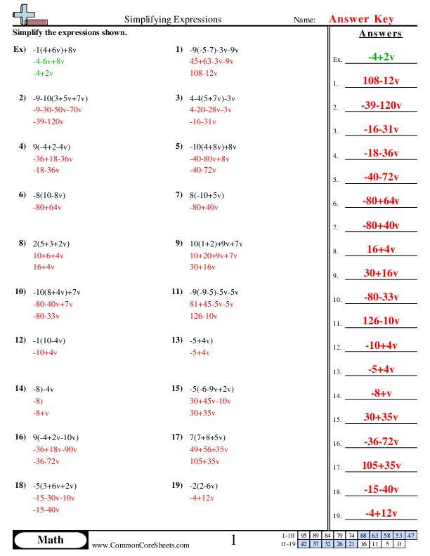 Simplifying Algebraic Expressions Worksheets with Answers PDF
