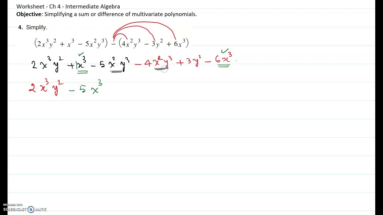 Worksheets provide structured practice problems that help reinforce concepts and improve understanding. They can be used by students for independent practice, by teachers for assessment, or by parents for additional support. A simplifying polynomials worksheet typically contains a variety of problems of varying difficulty levels to cater to different learners’ needs. By working through these problems, students can strengthen their algebraic skills and boost their confidence in solving polynomial expressions.