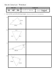 A sine law and cosine law worksheet typically consists of a series of problems that require students to apply these laws to find missing angles or sides in triangles. The worksheet may include a mix of right-angled and oblique triangles, challenging students to use both sine and cosine laws to solve the problems. By practicing with these worksheets, students can improve their understanding of trigonometry and develop their problem-solving skills.