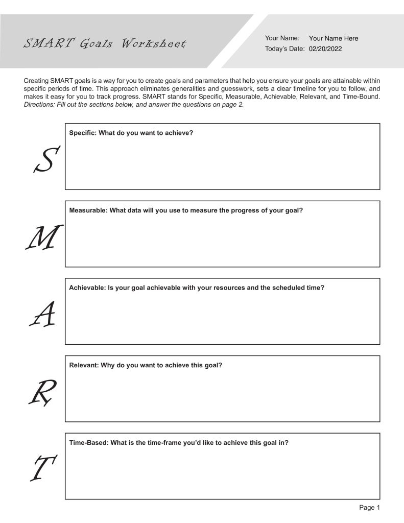 Setting goals is an important aspect of personal and professional development. However, achieving these goals requires a plan and a clear roadmap. This is where a Smart Goal Worksheet PDF can be incredibly helpful. By using this tool, individuals can outline their goals, break them down into manageable tasks, and track their progress over time.